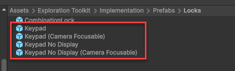 If you go to the Implementation > Prefabs > Locks folder, you will see a number of different keypads which you can implement.