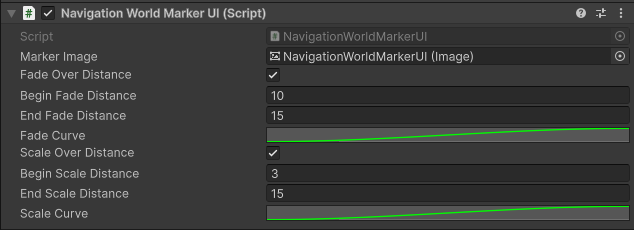The NavigationWorldMarkerManager GameObject has a canvas as a child. This is where the world marker UI elements will be housed. If you want to change the look of these world markers, you can modify the NavigationWorldMarkerUI prefab in the Core > Prefabs > UI > Navigation folder.