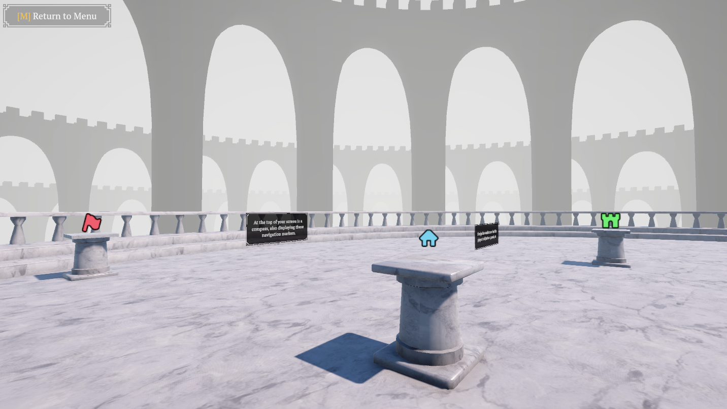 This system renders Navigation Markers on-screen via a canvas. The markers track to their position, and can scale/fade depending on the distance.