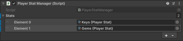 You can also interact with the stats via scripting. Do note, that you won't be interacting with the Stat ScriptableObject files directly. Only the PlayerStatManager.
