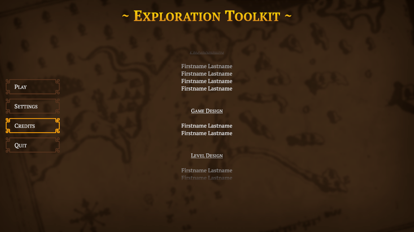 This is an automatic scrolling credits screen. Modify the text component and add whatever you like to the Content child object. You can also adjust the scroll speed.